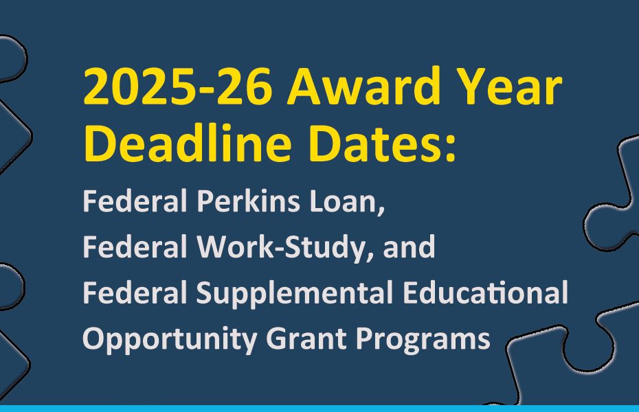 2025-26 Award Year Deadline Dates: Federal Perkins Loan, Federal Work-Study, and Federal Supplemental Educational Opportunity Grant ProgramsMay 23, 2025May 26, 20252 min read