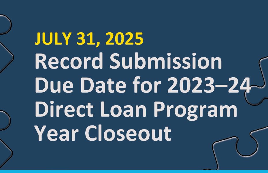 Record Submission Due Date for 2023–24 Direct Loan Program Year CloseoutMay 19, 2025May 21, 20254 min read
